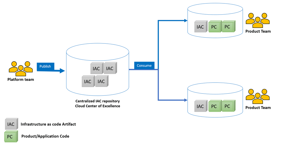 The idea is, one team, the Platform team in this case (different organizations can have a similar team named differently say, Infrastructure team, DevOps team etc.) can design modules while liaising with security, management and other stakeholders. These modules should be designed generically, tested, security analysed and then shared for consumption across product/development teams.